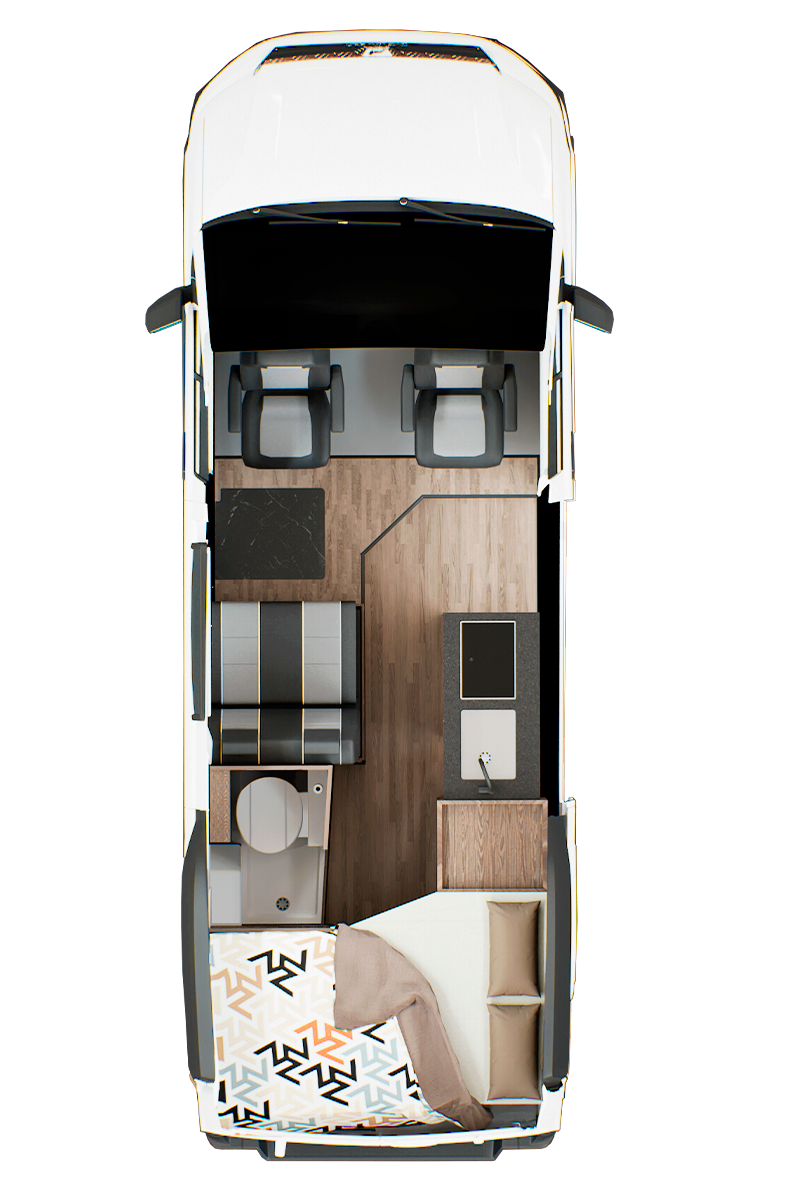 La Dopamine de CamperCas está pensada para quienes buscan un equilibrio entre espacio, practicidad y confort. Con más de 12 años de experiencia en camperización, este modelo ofrece una distribución inteligente que aprovecha cada rincón y mantiene la posibilidad de personalización según tus necesidades.